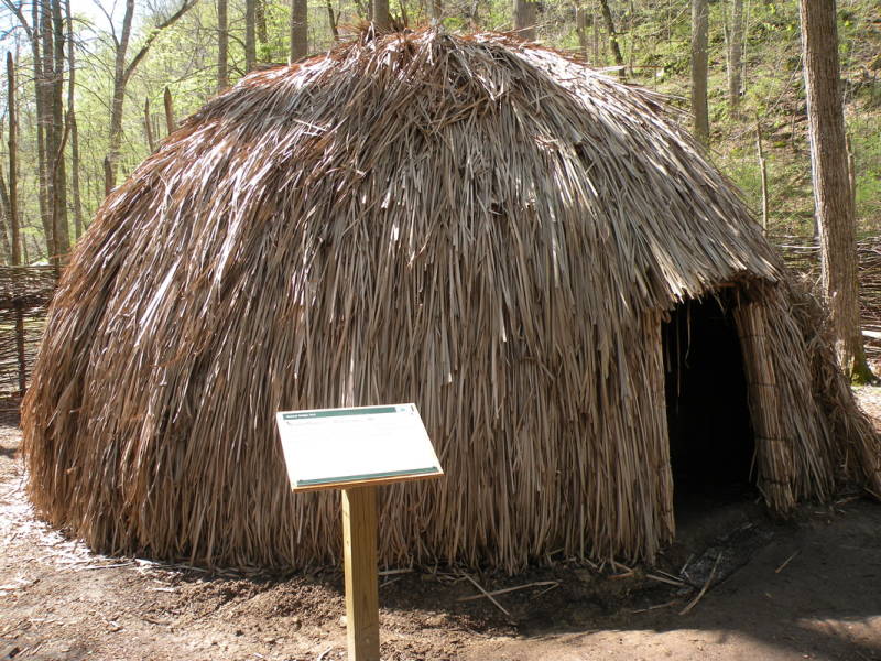 De Wigwam, was een ronde hut, gebruikt door veel verschillende Indiaanen. Het wordt laten zien als een van de meest makkelijkste, beste hutten die er bestaat. De hut was net zo veilig en warm als de hutten van hun voorouders. De buitenkant van de hut was bedenkt en kon het weer in de regio tegenhouden. De man van de familie, was verantwoordelijk voor de buiten kant van de hut. Jonge groene taken van zo’n 5 tot 7 meter lang werden van de bomen gehakt. Deze werden vervolgens soepel gemaakt door ze te buigen. Vervolgens werd er op de grond een cirkel gemaakt van 3 tot 5 meter. Daarna werden de takken over de cirkel gebogen, de lange werden voor het midden gebruikt de kortere aan de zijkanten. De takken vormden zo bogen in alle richtingen van de cirkel. Een tweede serie takken werd vervolgens om de hut gebonden om deze stevigheid te geven. Het geheel werd bedenkt met stro of boom schors.